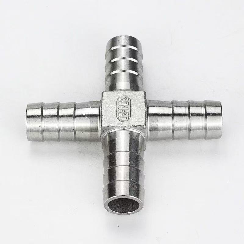 A matsayin ƙwararrun ƙera kayan aikin bututu a China, masana'antar Shenchi tana ba da nau'in nau'in bututun ruwa na Cross-Type Pagoda—bangaren karkatar da hanyoyi guda huɗu. Babban jikinta yana da tashoshin jiragen ruwa guda huɗu masu siffar giciye "pagoda" (barbed), waɗanda aka ƙera su daidai gwargwado don rarraba shigarwar ruwa guda ɗaya zuwa layin reshe uku ko don haɗa abubuwa da yawa zuwa ɗaya. Gina daga tagulla, 304 bakin karfe, ko 316L bakin karfe, samfurin yana nuna juriya na musamman kuma ya dace da aikace-aikace a cikin maganin ruwa, tsarin pneumatic, ban ruwa na noma, da kayan aikin likita. Gilashin da aka yi da shinge yana nuna ƙirar tsagi mai ƙyama; idan aka yi amfani da su tare da maƙallan bututu, suna tabbatar da amintaccen haɗin gwiwa, sauƙaƙe shigarwa cikin sauƙi, kuma suna ba da damar karkatar da ruwa mai inganci "ɗaya-cikin, uku-uku".